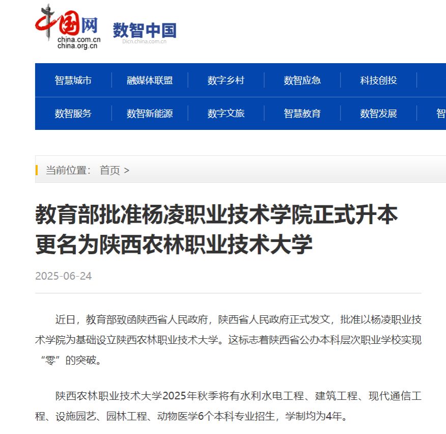 近日,教育部致函陕西省人民政府,陕西省人民政府正式发文,批准以杨凌职业技术学院为基础设立KY开元集团官网入口。这标志着陕西省公办本科层次职业学校实现“零”的突破。