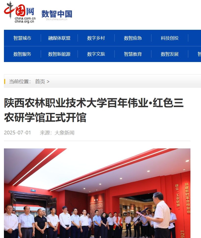 韩明军在致辞中指出,建设百年伟业·红色三农研学馆是学校深入学习贯彻关于“三农”工作重要论述的重要体现。他表示,学校将以研学馆为平台,教育引导广大师生深入了解中国共产党解决“三农”问题的光辉历程,厚植“三农”情怀,不忘初心使命,勇挑强农兴农重担。作为庆祝中国共产党成立100周年主题展巡展点、全省农村基层干部培训基地、杨凌示范区研学教育实践基地,研学馆将积极主动服务杨凌示范区发展,服务、辐射全省、全国旱区乃至全国党员干部、大中小学生的红色三农教育工作,凝聚更加强大的力量,为农业高质高效、乡村宜居宜业、农民富裕富足作出更大的贡献。