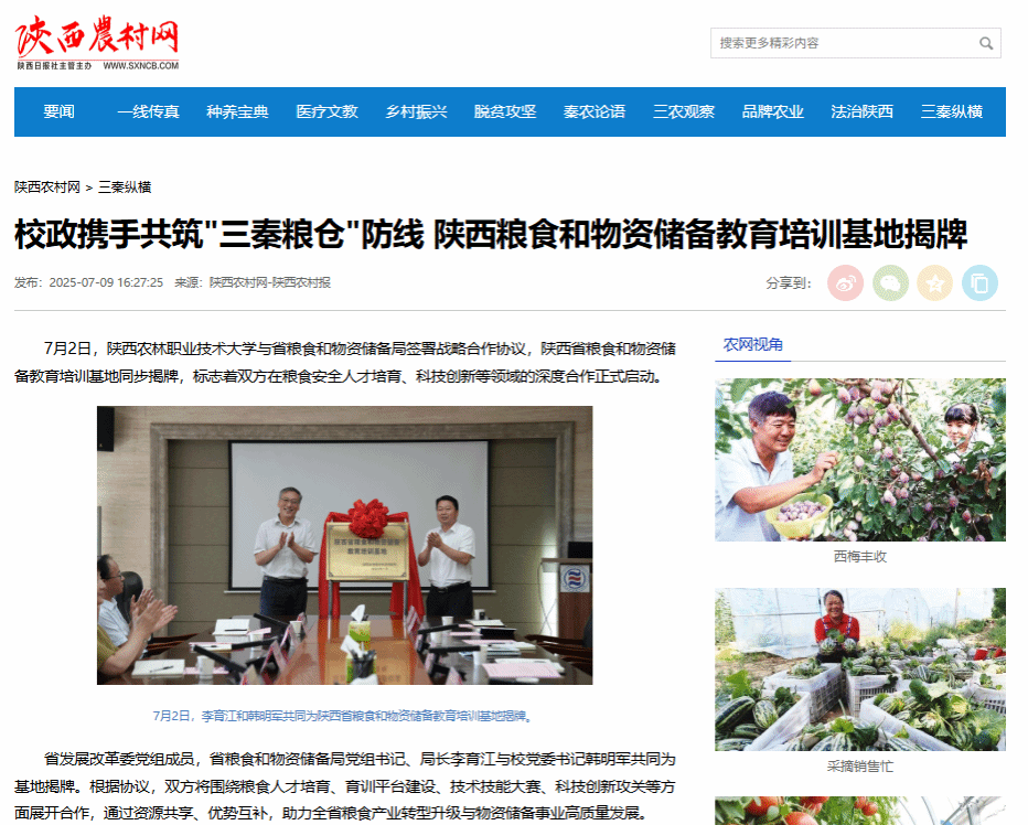 【陕西农村网】 校政携手共筑"三秦粮仓"防线 陕西粮食和物资储备教育培训基地揭牌
