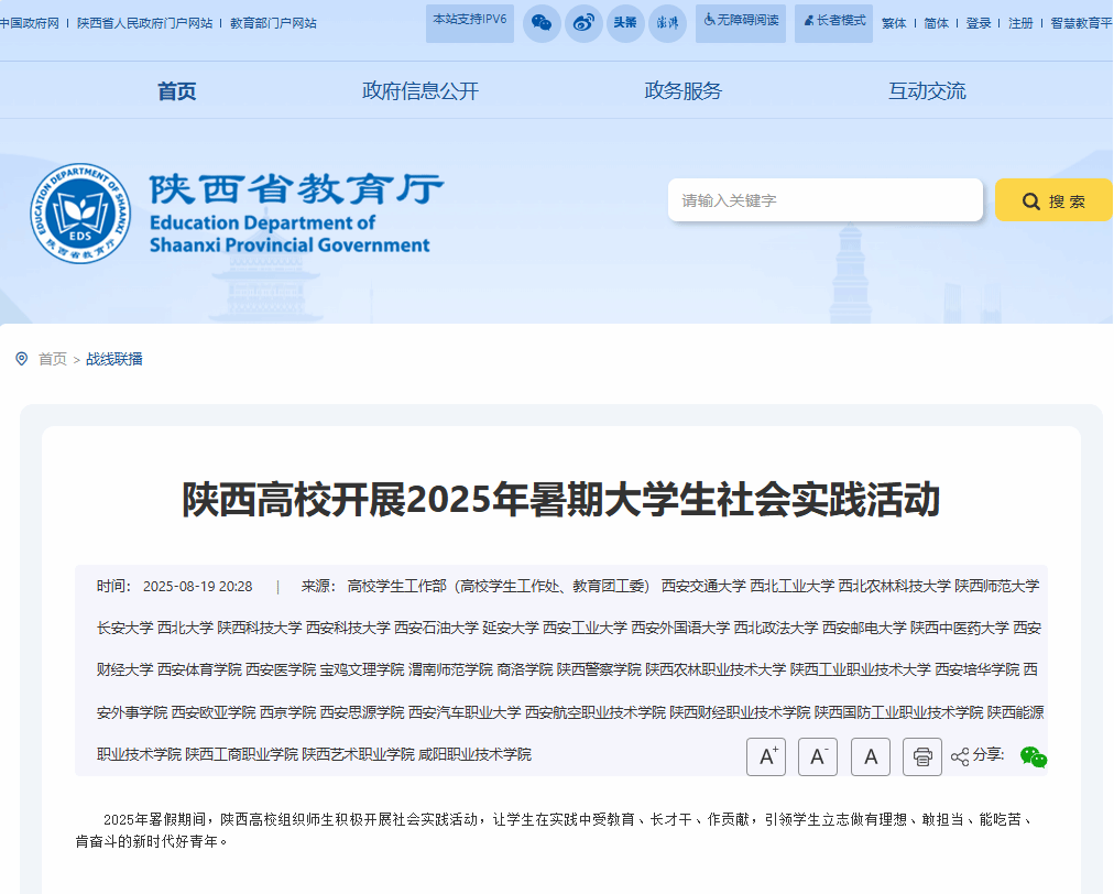 【陕西省教育厅】陕西高校开展2025年暑期大学生社会实践活动