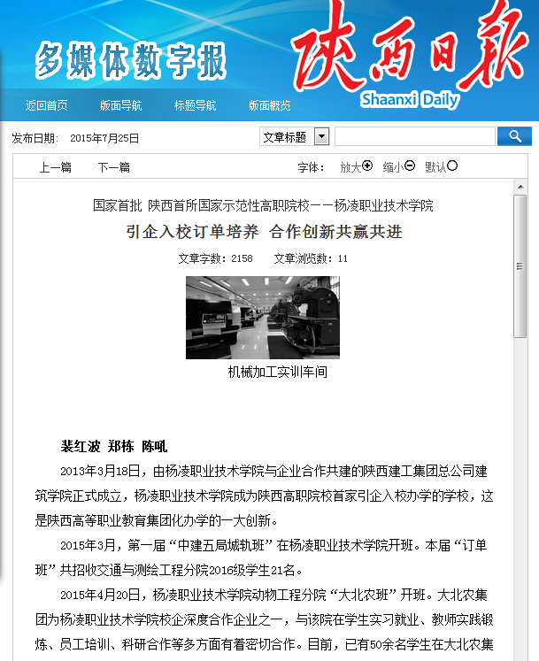 【陕西日报】引企入校订单培养 合作创新共赢共进