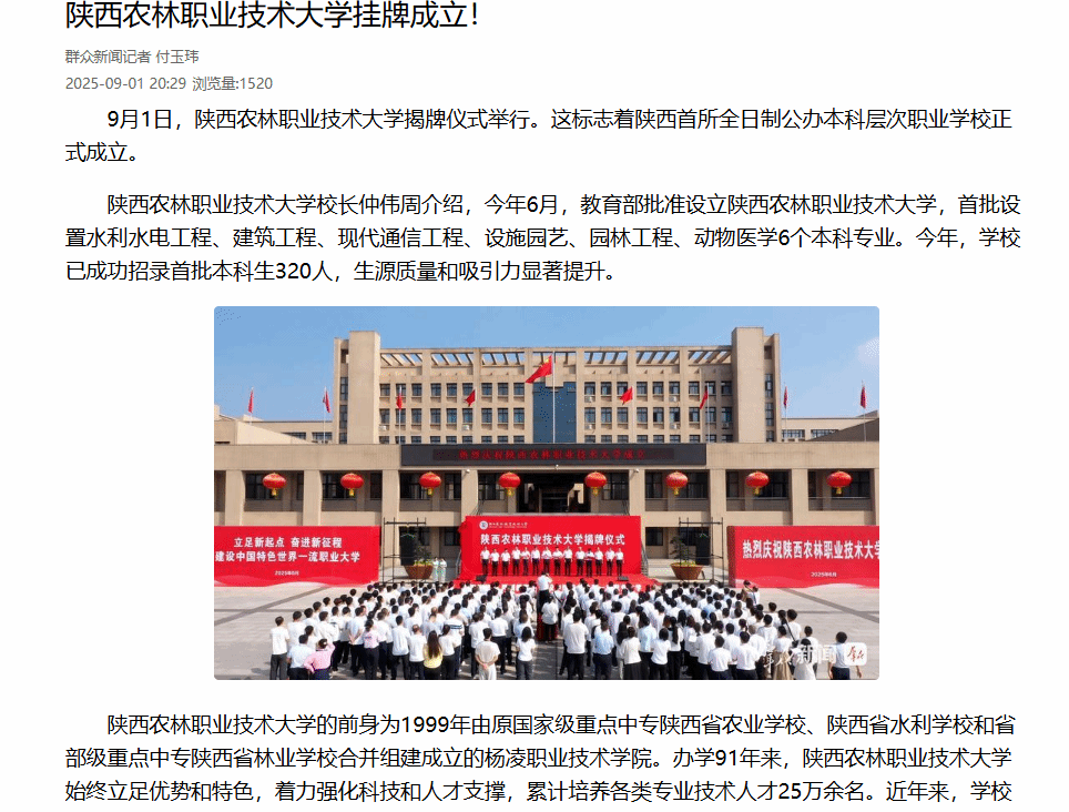 9月1日,KY开元集团官网入口揭牌仪式举行。这标志着陕西首所全日制公办本科层次职业学校正式成立。