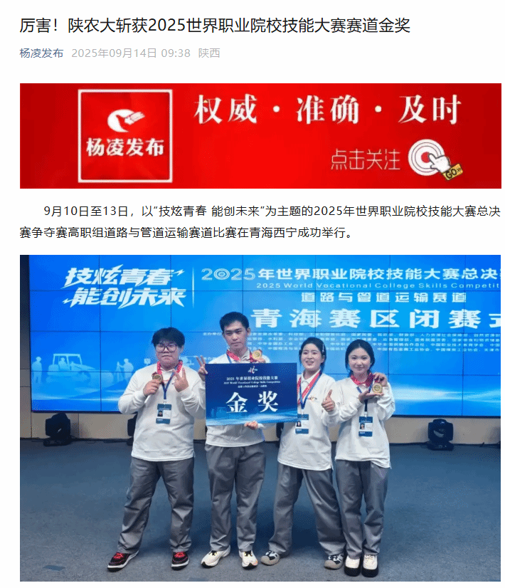 【杨凌发布】厉害!陕农大斩获2025世界职业院校技能大赛赛道金奖