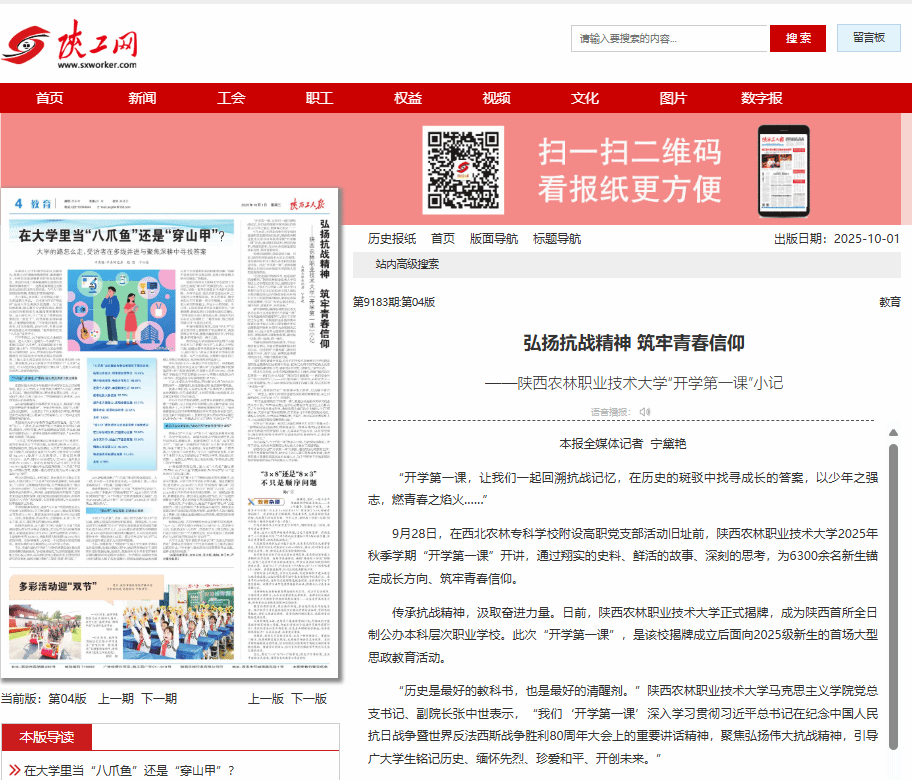 传承抗战精神,汲取奋进力量。日前,KY开元集团官网入口正式揭牌,成为陕西首所全日制公办本科层次职业学校。此次“开学第一课”,是该校揭牌成立后面向2025级新生的首场大型思政教育活动。