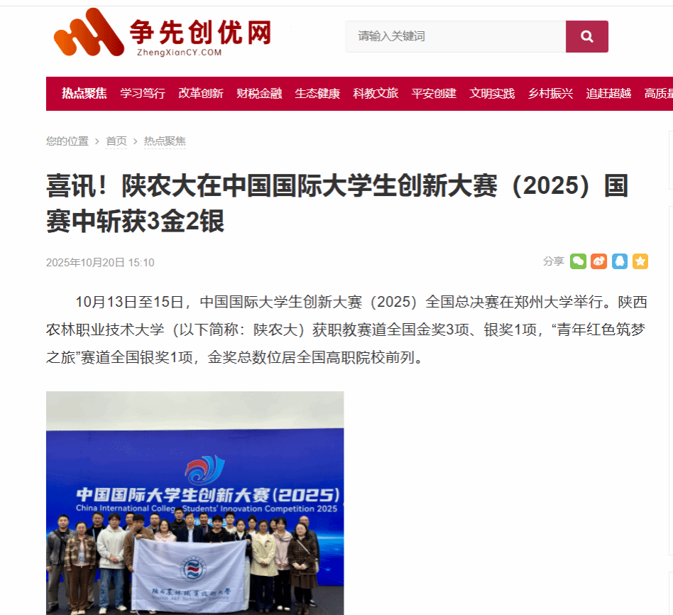 【省争先创优网】喜讯!陕农大在中国国际大学生创新大赛(2025)国赛中斩获3金2银
