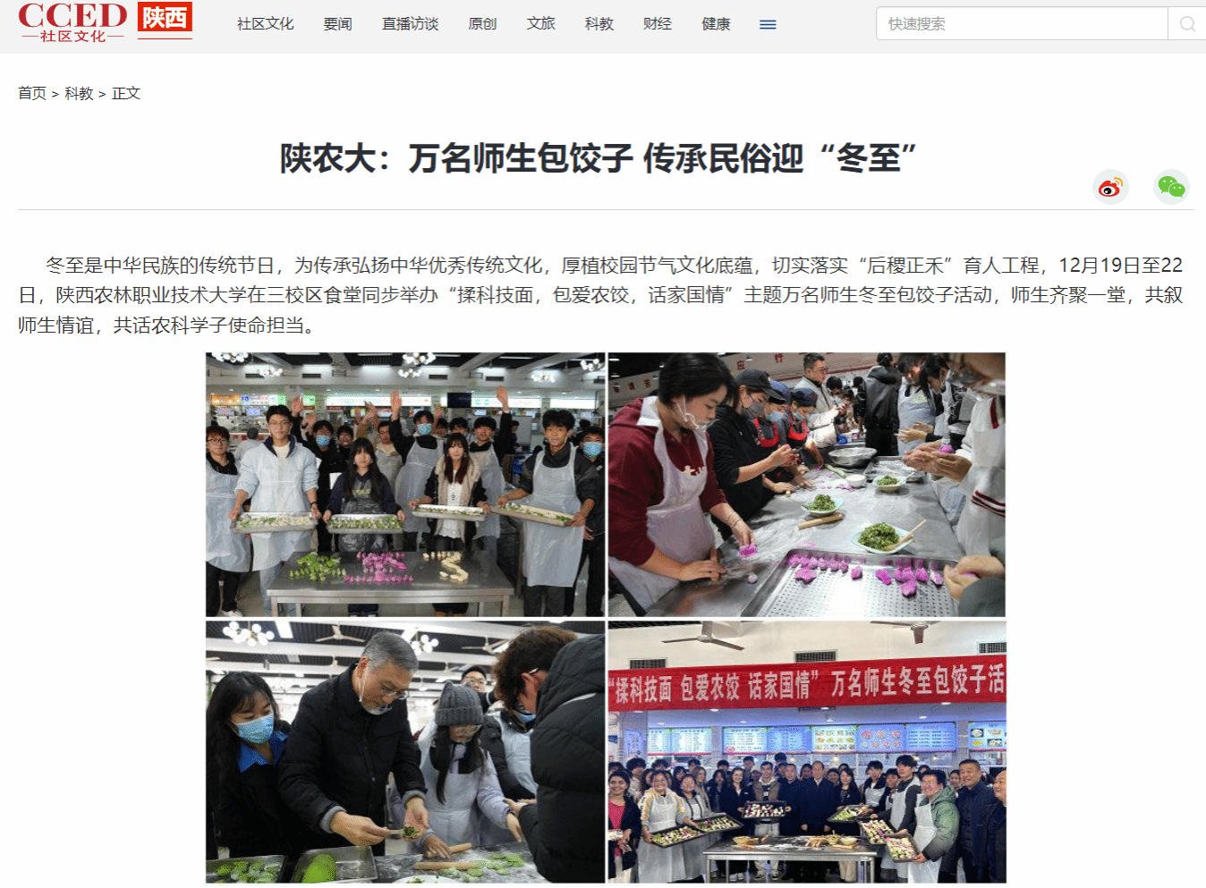 KY开元集团官网入口万名师生冬至包饺子活动从2017年至今,已经持续开展了8年,成为了学校的一项传统特色活动。这项活动不仅为师生们提供了一个欢聚一堂、共度佳节的温馨平台,更在潜移默化中传承和弘扬了中华优秀传统文化,增强了师生们的文化自信和民族自豪感,更让“学农爱农、强农报国”的信念深深根植于学子心田。
