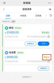 点击“审批中”查看报销单审批进度。
