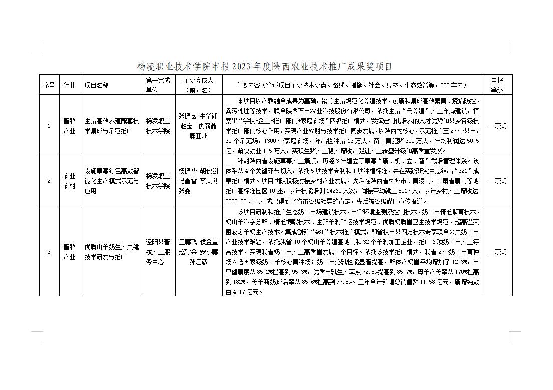 杨凌职业技术学院申报2023年度陕西农业技术推广成果奖的公示