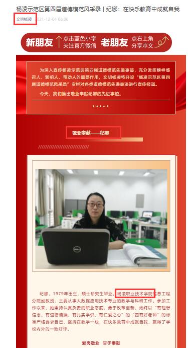 为深入宣传杨凌示范区第四届道德模范先进事迹,充分发挥榜样感召人、影响人、带动人的重要作用,文明杨凌特开设“杨凌示范区第四届道德模范风采录”专栏对各类道德模范先进事迹进行宣传报道。