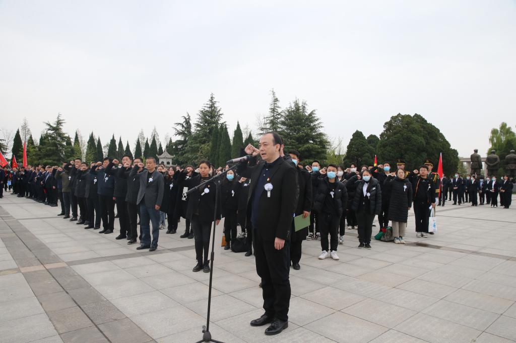 在扶眉战役纪念馆,青松翠柏环抱的“扶眉战役烈士永垂不朽”纪念碑前,张朝晖代表师生向革命烈士敬献花圈,深深地恭行三鞠躬礼,并代表学校向烈士陵园捐款。全体默哀3分钟,师生代表重温入党誓词,向为民族解放、国家富强和人民幸福献身的革命先烈们致以最崇高的敬意。陈军峰在讲话中,号召师生大力弘扬革命先烈不怕牺牲、勇往直前、攻坚克难的精神,全面推进学校高质量发展。学生代表发言,参加祭扫仪式的师生共同参观了革命烈士纪念馆并为烈士扫墓。